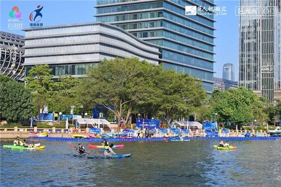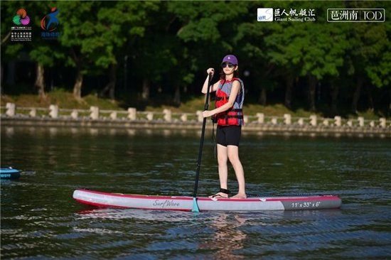 海珠区近年也在积极引进皮划艇、桨板、冲浪、路亚等国际盛行项目,推动水上运动进校园、进社区,通过水上休闲运动、群众体育赛事、滨水文商旅体等创新水经济发展生态。